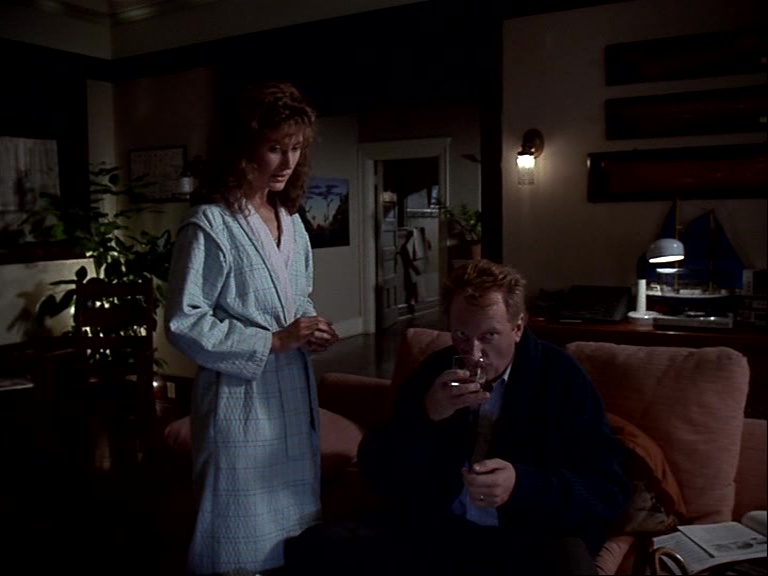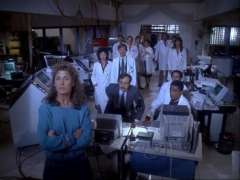 En France, on a longtemps considéré que le court-métrage était un passage obligé pour tout aspirant réalisateur afin qu’il puisse s’aguerrir et apprendre à diriger une équipe de tournage. Aux États-Unis, il en va autrement. Le nombre de séries étant pléthorique sur le petit écran, et sachant qu’à l’époque, chaque saison compte facilement une vingtaine d’épisodes, la télévision devient une grosse consommatrice de réalisateurs. Le médium compte bien évidemment ses vieux routiers mais s’ouvre aussi occasionnellement à de nouveaux noms pour lesquels il s’agit alors d’un galop d’essai voire d’une opportunité sans suite. C’est le cas pour John Michael Riva, rebaptisé ici par coquetterie Michael Riva. Ce chef décorateur de métier pour des films aussi variés que La Main du cauchemar, Les Goonies ou encore La Couleur pourpre, passe donc son baptême du feu sur une série déjà rôdée et au budget plutôt confortable. Il réitérera l’expérience quelques années plus tard le temps d’un épisode des Contes de la crypte, Le Secret. Au scénario, on retrouve en binôme une autre néophyte, Julie Moskowitz, nom d’ordinaire plutôt rattaché à la production. Assistante pour Steven Spielberg en personne, travaillant notamment sur Retour vers le futur ou bien L’Aventure intérieure, elle profite d’un retour d’ascenseur pour laisser libre cours à son imagination dans ce qui restera comme une opportunité sans lendemain. Son scénario s’inscrit dans l’air du temps en plaçant le travail d’un groupe de scientifiques au coeur de son récit, lequel n’est pas sans évoquer le récent Brainstorm. Forcément, dans le cadre étriqué d’un épisode d’une vingtaine de minutes, Mémoire éternelle réduit son angle d’attaque à l’intimité d’un couple, faisant fi de considérations plus philosophiques et géopolitiques.
